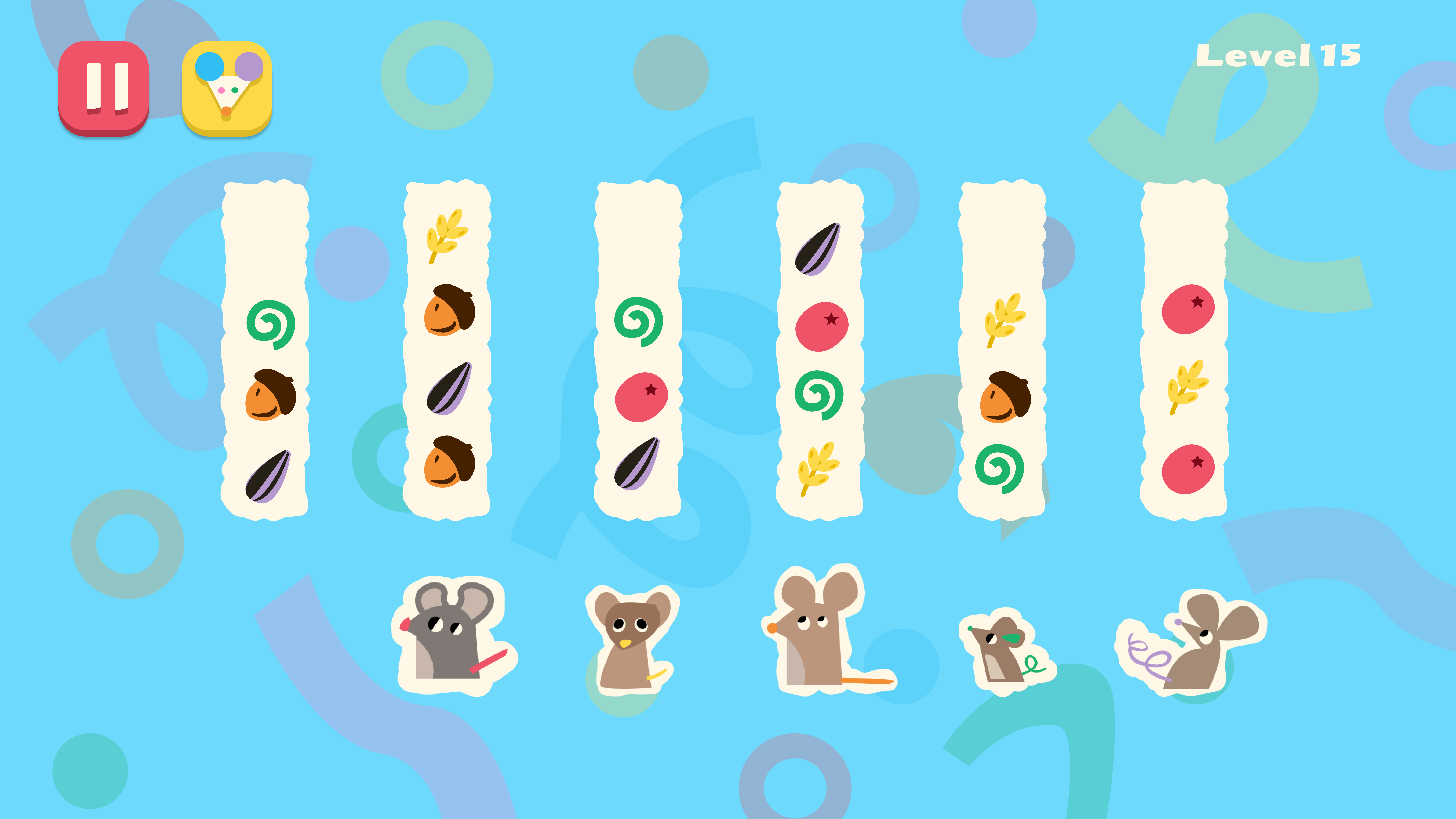 J’ai participé à la “Mini Jam 197 : Recursion” avec une artiste et game designer qui avait pour contrainte obligatoire “mouse only”. Le thème étant assez large, nous avons donc décidé d’une part de faire un jeu jouable qu’à la souris sur les souris. Le but “éducatif” du jeu était d’apprendre que malgré les idées reçues, les différentes souris ont leurs propre régimes alimentaires et ne mangent pas de fromage. Nous avons décidé de créer un jeu casual inspiré des jeux “water sort”.